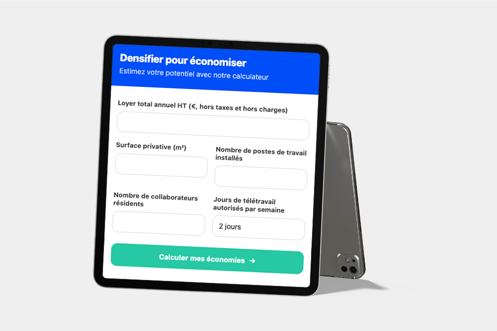 Estimez vos économies potentielles grâce à notre calculateur, qui mesure le nombre de mètres carrés dont vous avez réellement besoin, en s’appuyant sur deux KPIs clés :
